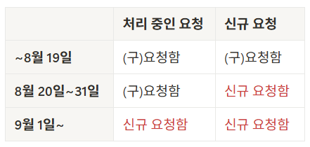 - 8월 20일 신규 요청함이 배포된 시점부터 8월 31일 까지 (구)요청함의 처리 중인 건은 회신 가능하나 신규로 요청할 수 없습니다.