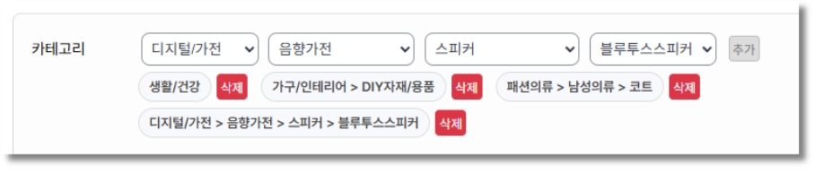 2. 카테고리 검색 시 대분류부터 세분류까지 원하는 범위까지만 선택 및 추가하여 검색 가능합니다.