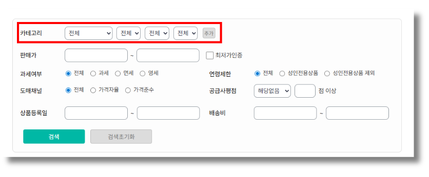다중 카테고리 검색을 통해 내가 소싱 하고싶은 상품군만 딱 골라 검색하세요!