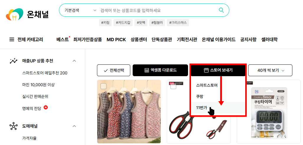 - 상품 리스트 상단 [스토어 보내기 > 11번가]