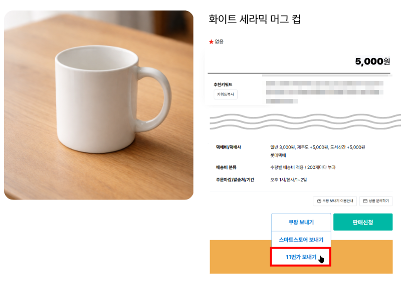11번가 상품 보내기 버튼 위치