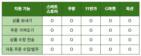 ※ 오픈마켓별 지원 기능은 아래 표를 참고해 주세요.