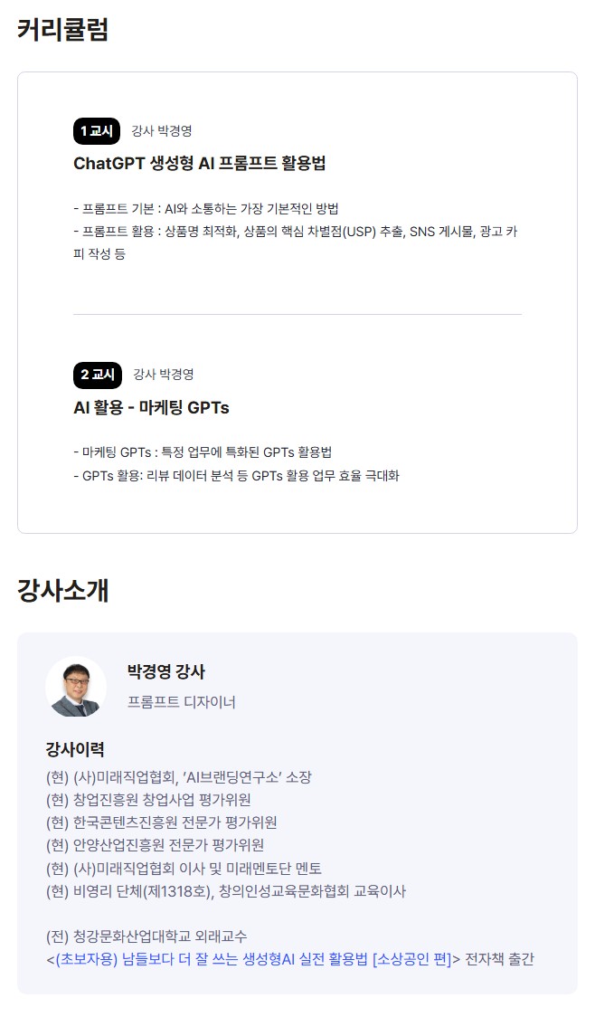 - 9/25(목), [ChatGPT 실전활용법] 2시간만에 끝내는 상세페이지 AI 글쓰기 12기