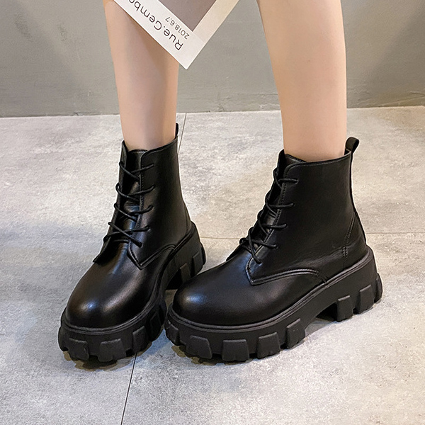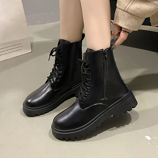 베이직 레이스업 빅사이즈 지퍼 레더 모던 여성 워커 US504