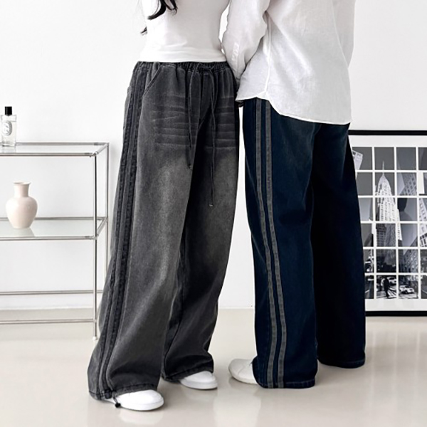 남녀공용 사이드 투라인 데님 와이드팬츠 SD-251024