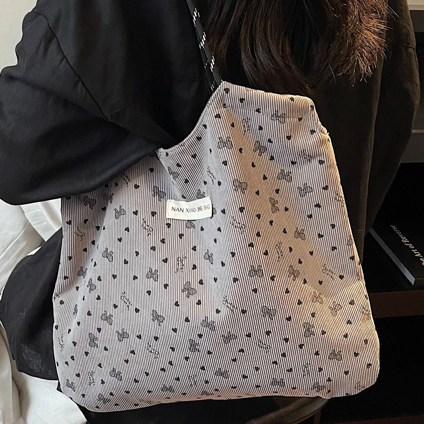 코듀로이 에코백 하트리본 베이직 숄더백 SSH-114